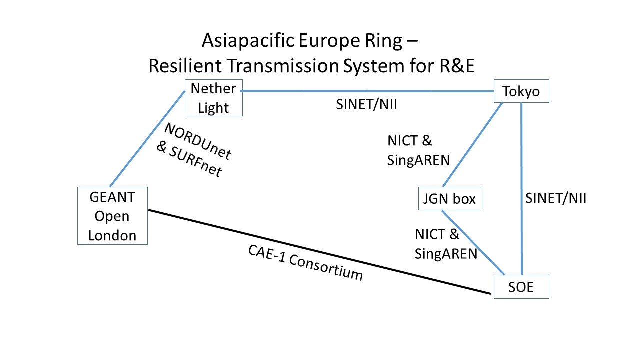 AER is a remarkable collaboration in the field of R&E networking between Asia and Europe and significantly improves the reliability of the connectivity between various R&E network organizations. AER also is an important step forward in further developing the Global Research & Education Network (GREN), based on the Global Network Architecture (GNA) for R&E.